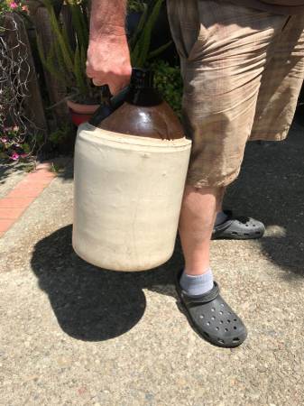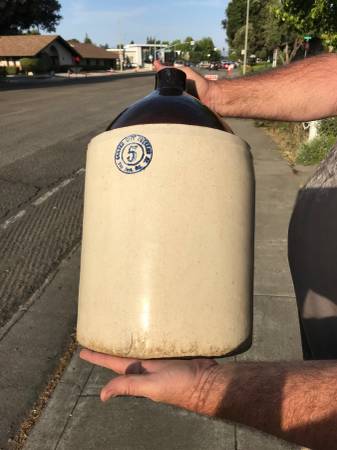 home brew beer whisky whiskey moon shine moonshine bottle pot old vnt vintage stoneware ware hooch pruno redwing red wing like 5 gallon gal handle salt glaze glazed shoulder wine mead mash corn still brew brewery