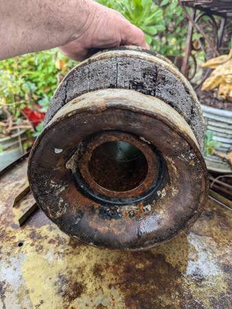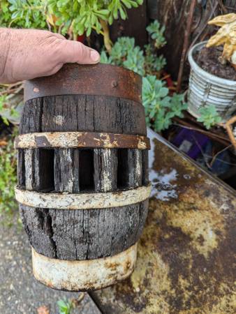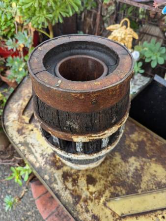 nice, heavy , solid old one. 12 slot..$80 cash about 12" tall...8-9 wide vnt vintage farm ranch wagon wheels axle spoke spokes wooden prop west western pub saloon mancave alm cart cowboy slots wheel...