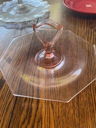 Pink Vintage Octagon PINK DEPRESSION GLASS Single Tiered TIDBIT Tray w/Handle 10.25"D