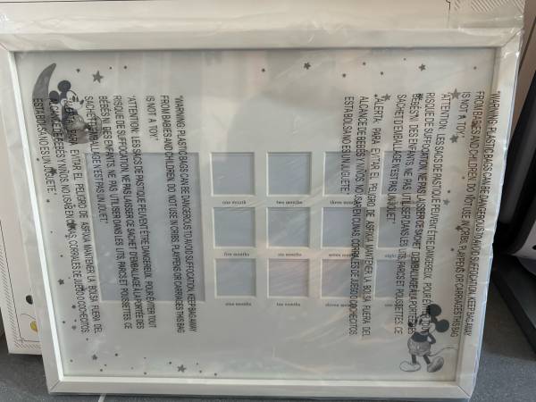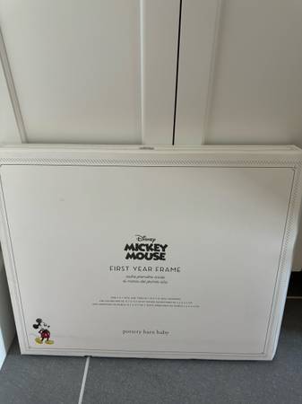 I bought this Pottery Barn Disney Mickey Mouse First Year Picture Frame and we never used it. Still brand new in box.