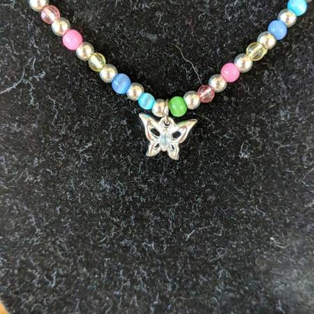 Sweet butterfly necklace. Little over 8" long I can ship if you pay for shipping.