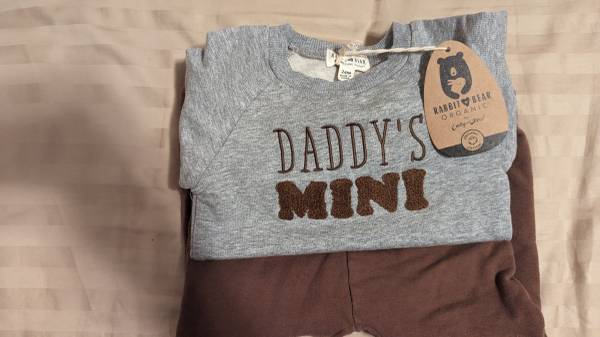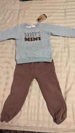 For sale is a cute brand new organic cotton with tag 2 year old pants and shirt set with Daddy's Mini print. Asking $10.