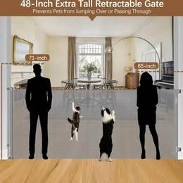48" Extra Tall Pet Gate: The upgrade extra tall pet gate height is 48 inches(4ft), which is taller than other retractable gate. Effectively prevents cats and large dogs from jumping over the mesh baby gate.