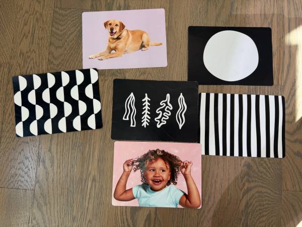 We used the play gym with one child. Everything included is in the pictures. Some of the black and white cards show signs of use.