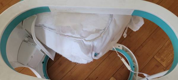 Only issue is that the seat pad shows wear as shown in the photo but still safely supports the baby and toddler.