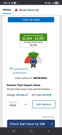 I have a 2004 toyota camry runs good pink and registration in hand 297k mile