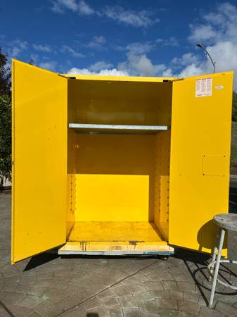 I am selling Flammable Liquid Storage Cabinet Justrite brand Self-Closing Door Yellow 60 gal.The dimension are 43inches W 34inches D 66inches H. YOU CAN REACH ME AT