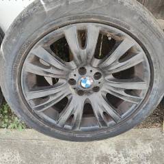 Complete set staggered originally from my X5 with OEM hubcap and sensor. Style 223M black, BMW LA wheel, M V spoke 223 option S2M5 from factory M package. All are diameters of 19" inches, with a bolt pattern of 5x120. These are good to keep as spare or to mount winter tires. They are also good to change your setup between square and staggered. As the pictures indicate, 2 of the 4 are still good to drive. They are just a bit dusty but fully function and not bend or crack in anyway.