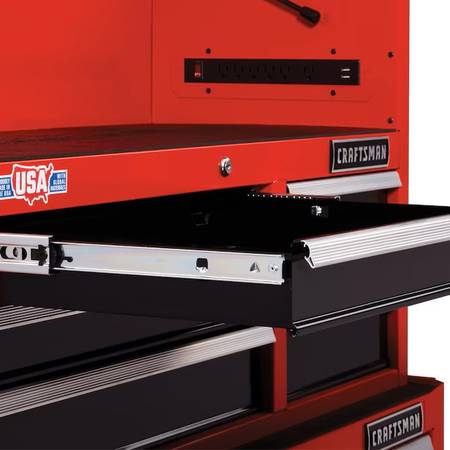 EASY ACCESS: Gas struts Support the tool chest lid and provide access to the charging area