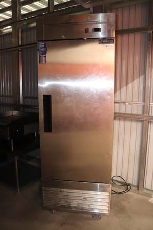 The Dukers D28R reach-in refrigerator is constructed of stainless steel, giving it the durability needed to withstand frequent use, impacts, and cleaning. Its four epoxy-coated wire shelves are adjustable to support a variety of product sizes and layouts. Designed with food safety and hygiene in mind, the sealed interior floor and rounded cabinet corners prevent debris buildup and make cleanup easier. This unit also includes foamed-in-place insulation to help stabilize temperatures, and it rests on 5-inch casters—two with brakes—for convenient mobility and secure placement. An automatic defrost system prevents ice buildup, reducing maintenance time and ensuring consistent performance.