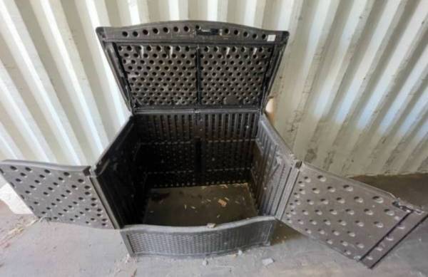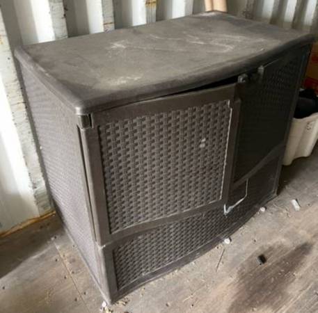 $99 OBO Suncast Vertical Brown Plastic Wicker style storage