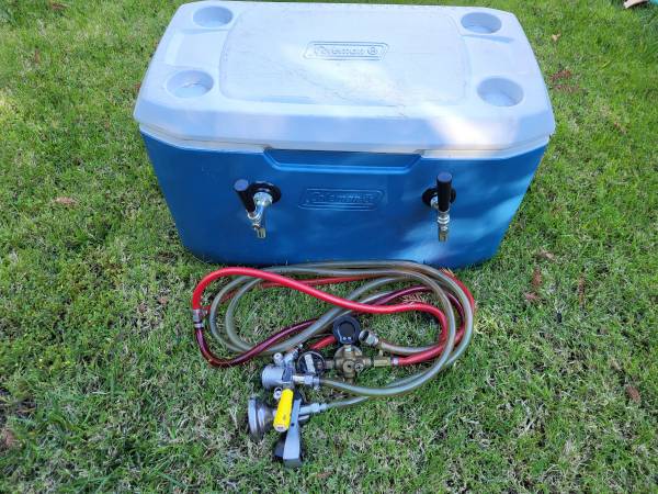 Comes with hook ups for pony or full size keg and regulator for CO² tank