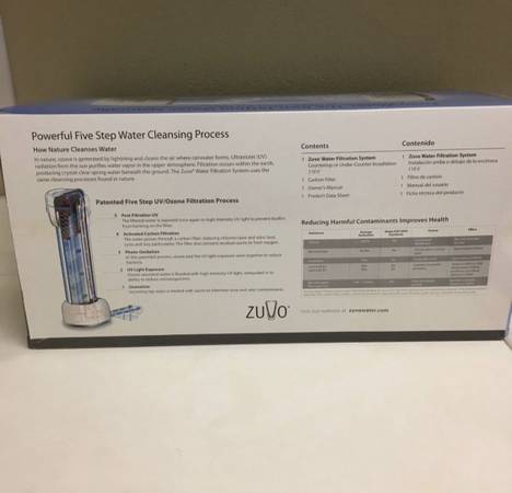 Brand new Zuvo Water is an under-counter sink UV filtration system with faucet. No carbon block filter. $20 each or all 5 for $60