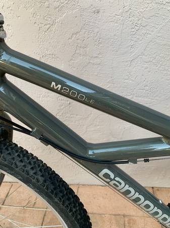 I am selling a CANNONDALE CAD 1 ME200LE MOUNT BIKE. This cannondale ME200LE is in nice condition. It is a metalic green/gray color and is a size 16"/41cm. CAD 1 means Cannondale Advanced Aluminum Design as marked on the bike. It was just serviced and everything was lubed adjusted and trued. As part of the service the bike has a brand new front and rear tire tubes, rear gear cable with cable housing, a brand new Schwinn saddle/seat with stitching. The bike has Shimano Acera X front and rear derailleurs, Shimano Altus crankset, SRAM MRX Comp Gripshift 7x3 shifters. The bike has 26" wheels with Sovus hubs and Continental Race King 2.0 tires. It also has Avenir handlebar ends. I am selling this bike for $350.00