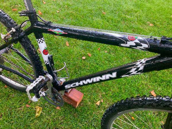 Rare pristine Schwinn HomeGrown XC race bike. The Homegrown was a special limited edition race bike. This bikes completely original a collector’s dream bike. The bike has a new tune rebuild cables, housing grease, RD hanger gear, brake, wheel adjustments. It needs nothing. Perfect for riding around the neighborhood, or trail riding with your kids in style.