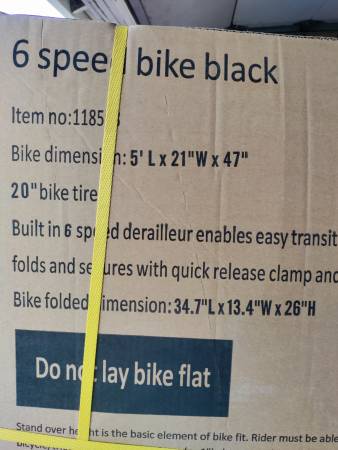 I have a brand new in the box 6 speed stowaway 20 wheel bike in black color. easy to assemble I can assist on putting it together if you like.