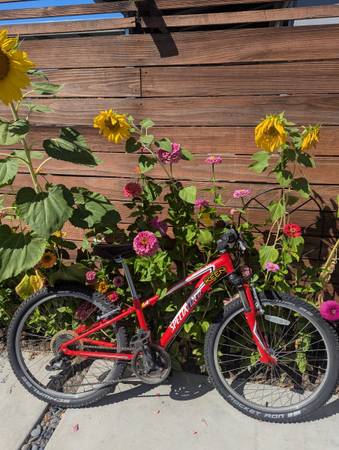 Great little mountainbike with 24 speeds and a suspension fork. Upgraded tires. My son has outgrown it.