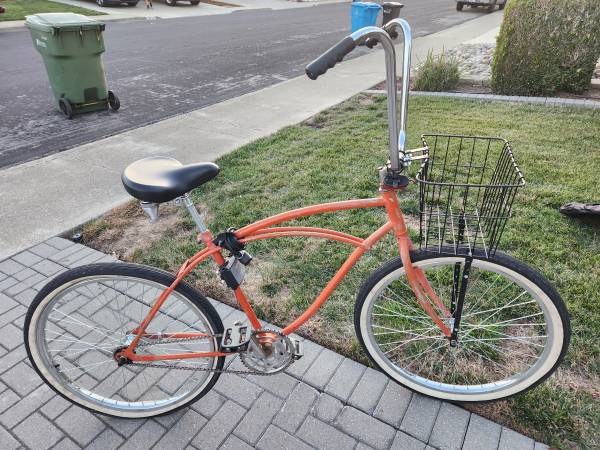Selling this vintage bike. Recent upgrades include new seat, new wheels, new chain, new tires. Kickstand, pedals, and basket were replaced/added within a couple of years. Needs a new tube on back...