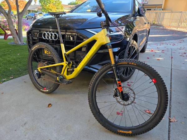 Everything in amazing condition, many parts relatively new. New bearings, suspension serviced, chain and tires have long life in them. Less than 100 miles on the cassette (outer chainring has paint rubs which happen after the first ride). Comes with a $500 power-meter. There are 2 tiny paint chips from loading the bike (see photo) mostly out of sight.