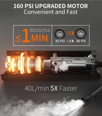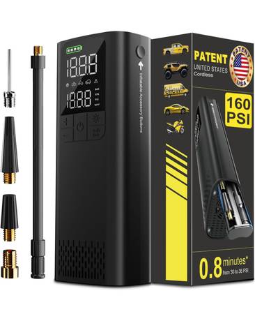 Car Tire Inflator Portable Air Compressor,0.8 Min Full Inflation 160 PSI Digital Electric Auto Air Pump with Pressure Gauge,Type-c Charging Cable,Emergency LED Light for Car Bike Balls Motorcycle