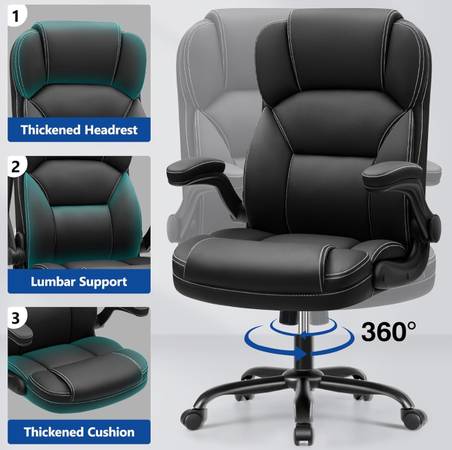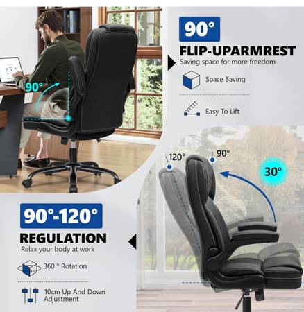 New, still in box PU Leather Executive Office Chair Computer & Gaming Chair, Black Ergonomic High-Back Comfy Padded Seat with Adjustable Height Rolling Swivel Flip-Up Armrests for Home Office
