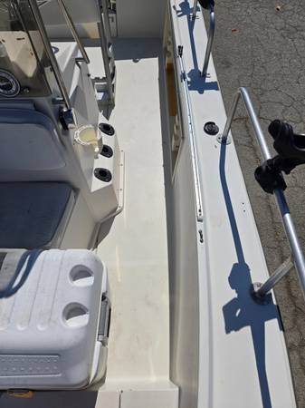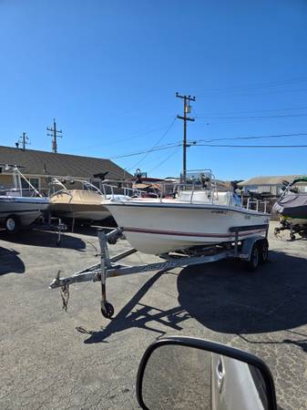 New motor still has 3 years of manufacturer warranty.motor has 340 hrs. completely reworked last year with new fuse panel also. Fabricated boat rails all the way around with leaning post. Built-in bait tank water feeds from the bottom of the hall. Motor fully serviced t his weekend 2-8-25 by salinas valley marine have receipts to show. Trailer has no issues.New tires purchased last year .Wash down pump no stress cracks on boat Hall or deck Everything works as should. Call 831eight 01-zero877