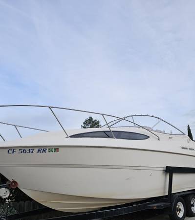 Ready for water, clean title, comes with trailer. Has many extras life jackets, boat cover and etc. Microwave, stove, marine toilet, refrigerator, convertible dinette. Fiberglass, Mercruiser 5.0L/Alpha, layout includes V-bert, 20 gallona of water and 24ft. No ripped on the upholstery good condition. Runs strong and maintenance done. Come with bbq grill attached to the side of the boat. Everything is in working condition.