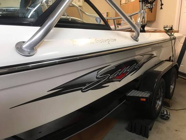 2007 Sanger V210 black scorpion with 299 hours. The boat is in excellent condition and has always been stored in the garage as you can see in the pics. I am the second owner. I bought it in 08 with 38 hrs on it. It has a 5.7 330 HP Mercruiser engine. The motor runs perfectly and all maintenance is up to date. Very low hours (299). Most of the time the boat was parked in a cove as we enjoyed the day. This boat is well taken care of and it shows.