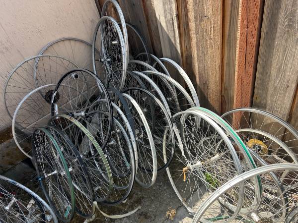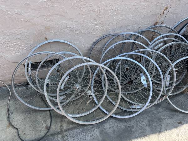 I have many front and back rims, some are very nice. Wheels are true, they are mostly 26" and 700c $20 each. IF YOU SEE THIS AD ITS STILL AVAILABLE I also do bike repair. Call with questions.