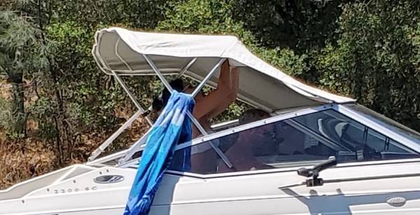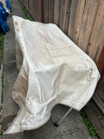 White canvas Bimini top for your boat Canvas and alloy poles are in excellent shape. Zippers are in good shape 78” wide at the bottom of the poles. See picture.