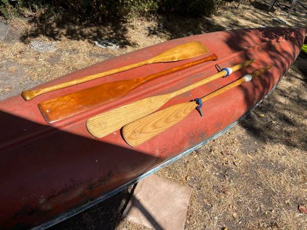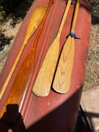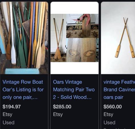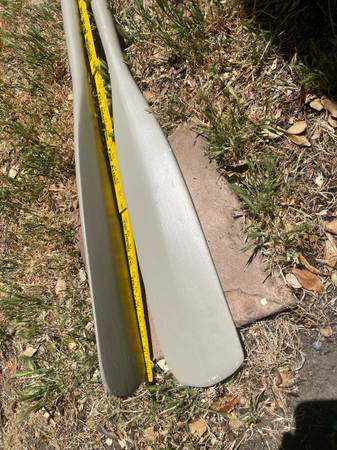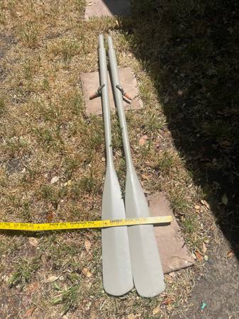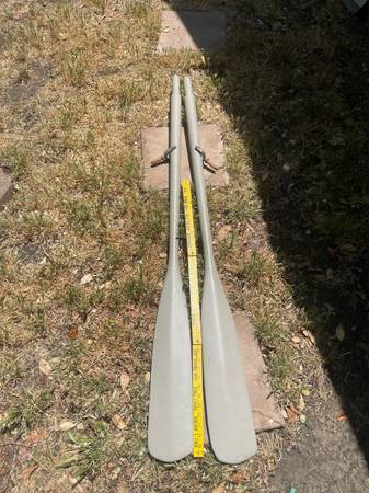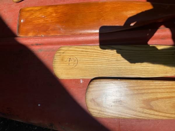 Boat paddles, boat oars and oar locks. Restored. Good condition. The gray 60” oak. $80. With oar locks The pair of 66” oak paddles $199 Excellent condition. With oar locks.