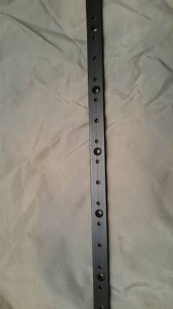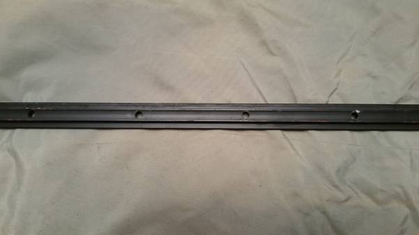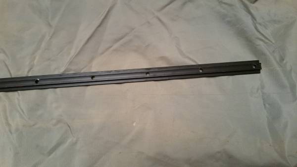 This is a New Black Anodized Aluminum 1” T-Track that is 3’1” long with holes 4” center-to-center and standard intermediate pin stops. It requires ten ¼” Flat-head mounting screws.