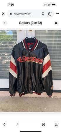 I am selling a vintage late 1980'S SAN FRANCISCO 49ERS FAUX LEATHER BOMBER JACKET SIZE MENS EXTRA LARGE (XL). This NFL SF 49ers jacket is in overall nice condition for its age. It looks and feels like real leather but it made of faux leather material. And it was just laundered. It has embroidered logos on the front, back and left lower sleeve. It also has the NFL logo label and the vintage National Football Conference embroidered logo on the back. 95% of the jacket is in great condition. The front, back and sleeves are all in nice shape. The jacket collar and sleeves do not have stretching. However, the only blemishes are that the white and red stripe areas of both sleeves have clackling. And the zipper works perfectly but it works using a metal ring. I am selling this cool niners jacket for $200.00