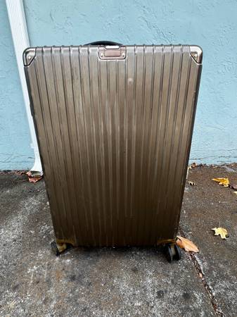 This is a large rimowa vintage suitcase Plastic/rubber body 4 wheeler Handles are peeling And inside one side lining is loose see all photos Local Milpitas pick up Thank you