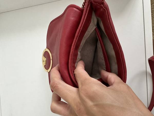 Beautiful Michael Kors crossbody bag in quilted red leather with gold hardware. Great condition overall — exterior leather is soft with light wear and one small mark on the bottom (see photo).