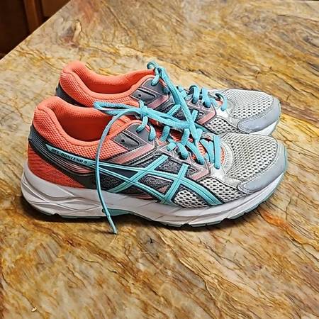 ASICS Gel Contend 3 - 8.5 Asics Gelcontend 3 women's size 8.5 sneakers, running shoes Coral and Turquoise color these have been washed in washing machines. if particular about the bottom, may need a...
