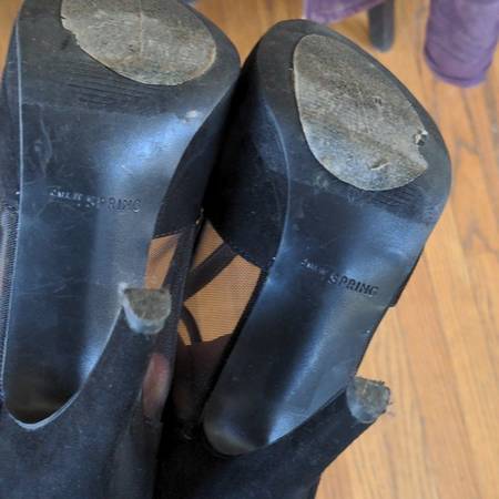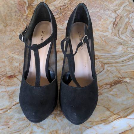 CALL IT SPRING Black heels pumps shoes-8.5 size 8.5 black suede strappy, closed toe note the pretty side netting only worn once. note the areas that maybe need a suede brush like the top of the toes...