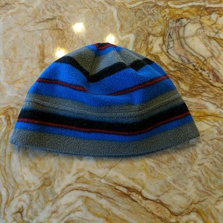 Blue, black red, gray, beanie 100% poly Size kid M/L 10.5" wide x 7" tall with additional stretchiness beyond that size. Washable I can ship if you pay for shipping. back to school, winter, snow