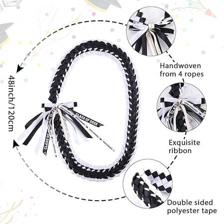 BLACK-WHITE Graduation LEI Ribbon and Necklace Class of 2025 Graduation Gift - Braided Necklace for Men and Women - Party Accessories Check my listings for other colors and other options. 2518576