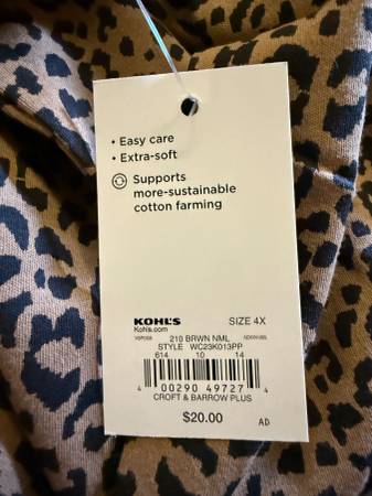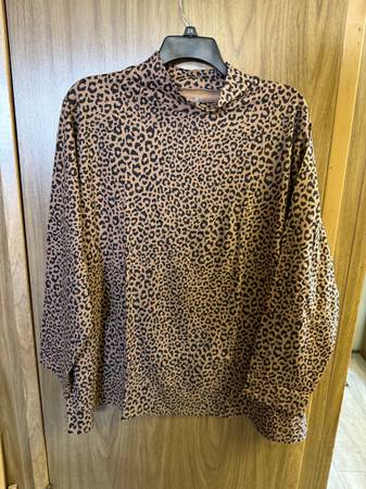 Croft & Barrow Women's Brown and Black Leopard Mock Neck Long Sleeve Top Cotton Blend Size 4X.