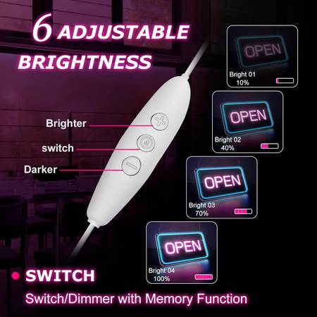 【Easy to Use& Lasting】: Open / Off Switch Control, No need taking off the adpter from socket everyday. The open sign led can last up to 50,000 hours! Owning this led open sign, start yours interesting business time