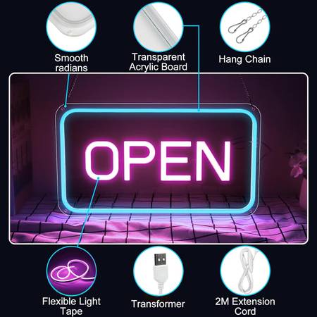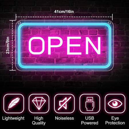 Like NEW Neon Open Sign 16''x9'', Super Bright LED for Business Adjustable Brightness USB Powered ON / OFF Switch Party Club Hotel Window Wall Store Ice Blue & Pink Horizontal
