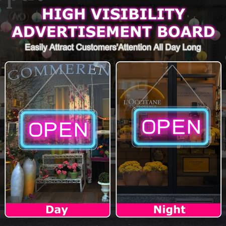 【Super Bright & Energy Saving】: open signs for business, clear colors, such bright and visible even from a distance. Light weight Acrylic board, High quality COB led chips, matched safe 5V voltage, make highly bright lighting effect, saving your eletricity bills