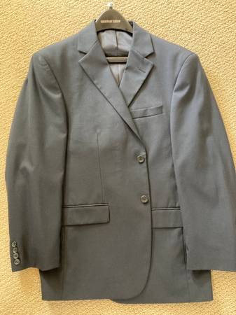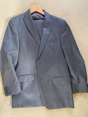 slightly used macys mens suits brands dark and light color. size 38-40 regular short. waist 32-34 and length 30" leave number if interested