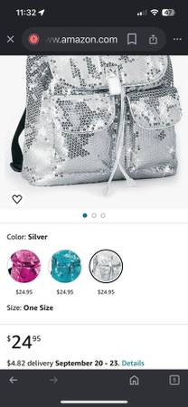 This is a nice backpack/ Purse for girls. Made with sequin and silver color body. It is deep inside and has two side pockets too.