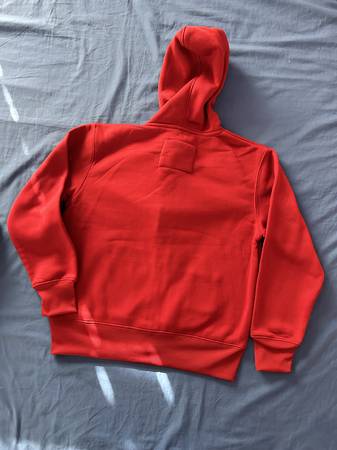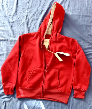 This is a nice red colored fleece jacket with hood, for boys. It is in size 10-12 (Lg). It is good for light to moderate cold temperatures