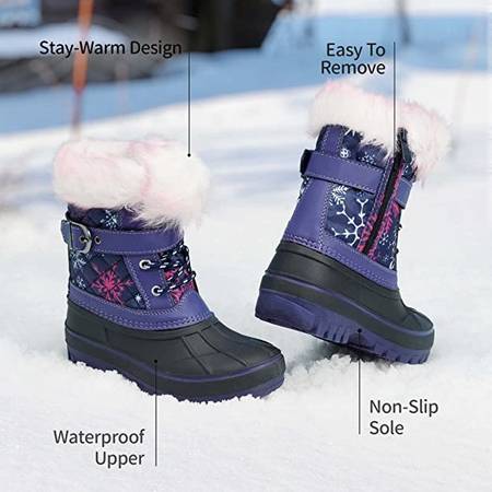 [ Warmth & Insulation ] : With the interior covered with thick faux fur these winter boots provide warmth for children even when they’re playing outdoors