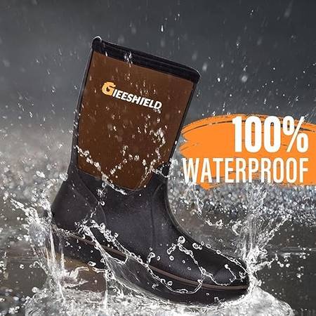 【Stay Dry and Safe】: GIEESHIELD's rubber boots feature natural rubber and 5.5mm neoprene construction, making them 100% waterproof and slip-resistant. The outsole delivers unbeatable traction on any terrain, ensuring you stay safe and dry whether you're at work or out hunting. Available in sizes 5-14.