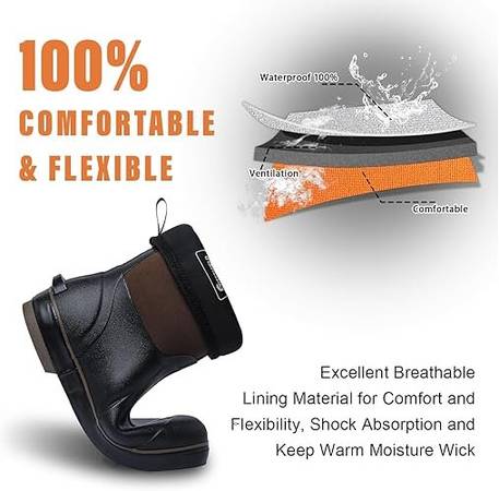 【Comfortable and Breathable】: The boots feature a lightweight and breathable mesh lining, along with 5.5mm neoprene uppers, to provide excellent ventilation and warmth. In addition, the boots come with lightweight and flexible insoles, which offer cushioning and shock absorption to reduce foot fatigue. The boots are also comfort rated for temperatures ranging from -4°F to 68°F (-20°C to 20°C), making them suitable for all-day work.