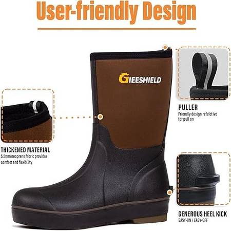 【Versatile Use】: GIEESHIELD's high-quality rubber boots are perfect for a wide range of workplaces, including farms, gardens, fishing, construction sites, and manufacturing plants. Whether you work, hunt, or fish, GIEESHIELD's work and hunting boots have got you covered.